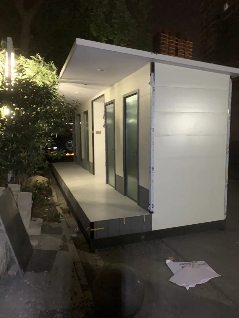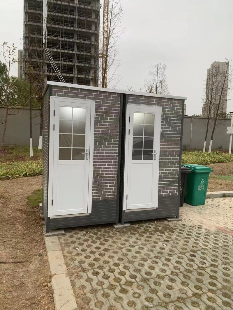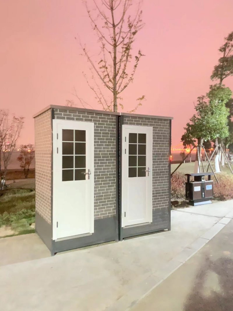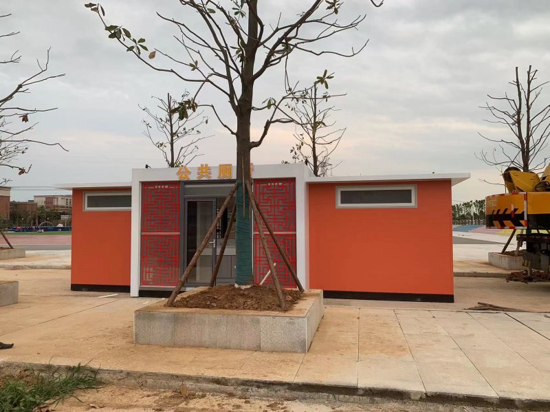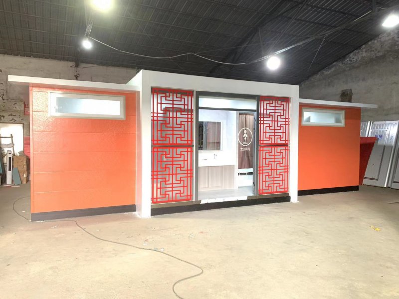 拼裝廁所;在廠里做好各個(gè)廁所部件,再到現(xiàn)場組裝在一齊,適合不易運(yùn)輸?shù)拇笮蛶_@座箱式廁所,女廁5個(gè)蹲位內(nèi)配工具間,男廁2個(gè)蹲位+2小便斗,第三衛(wèi)生間由殘疾馬桶、助力洗手盆和兒童馬桶、兒童洗手盆外加?jì)雰号_(tái)等設(shè)施。廁所前后有窗,通風(fēng)采光,前部走廊裝有屋檐,防雨防曬。此廁所位于公路綠道邊,整體大氣,功能齊全,造型美觀,是一道難得的靚麗景觀!
